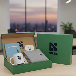 Niles Core offers customised employee onboarding kits designed to make the onboarding experience smoother and memorable. We help your new hires feel valued from day one with kits containing essential items tailored to their needs. Every element, from office supplies to company-branded merchandise, is fully customisable to match your requirements.