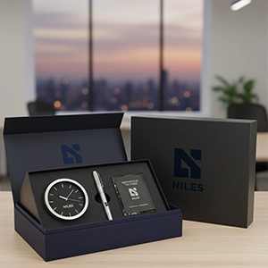 Niles Core Giveaways specializes in tailored corporate gifting solutions in Pakistan. We offer a wide variety of gift options, including corporate gift boxes, gift baskets, and business booster boxes, making corporate gifting simple and hassle-free.